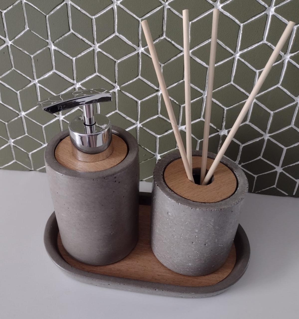 Kit banheiro madeira sabonete/difusor